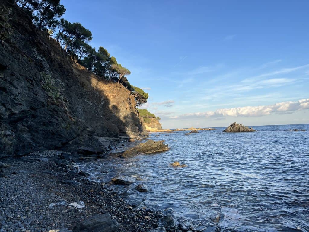 In Banyuls-Sur-Mer auf halber Strecke hat zumindest ein Restaurant an der Promenade offen. Hier muss man auch ein gutes Stück an der Straße laufen. Dahinter wieder toller Küstenweg mit weiteren Badebuchten bis nach Cebère an der spanischen Grenze.