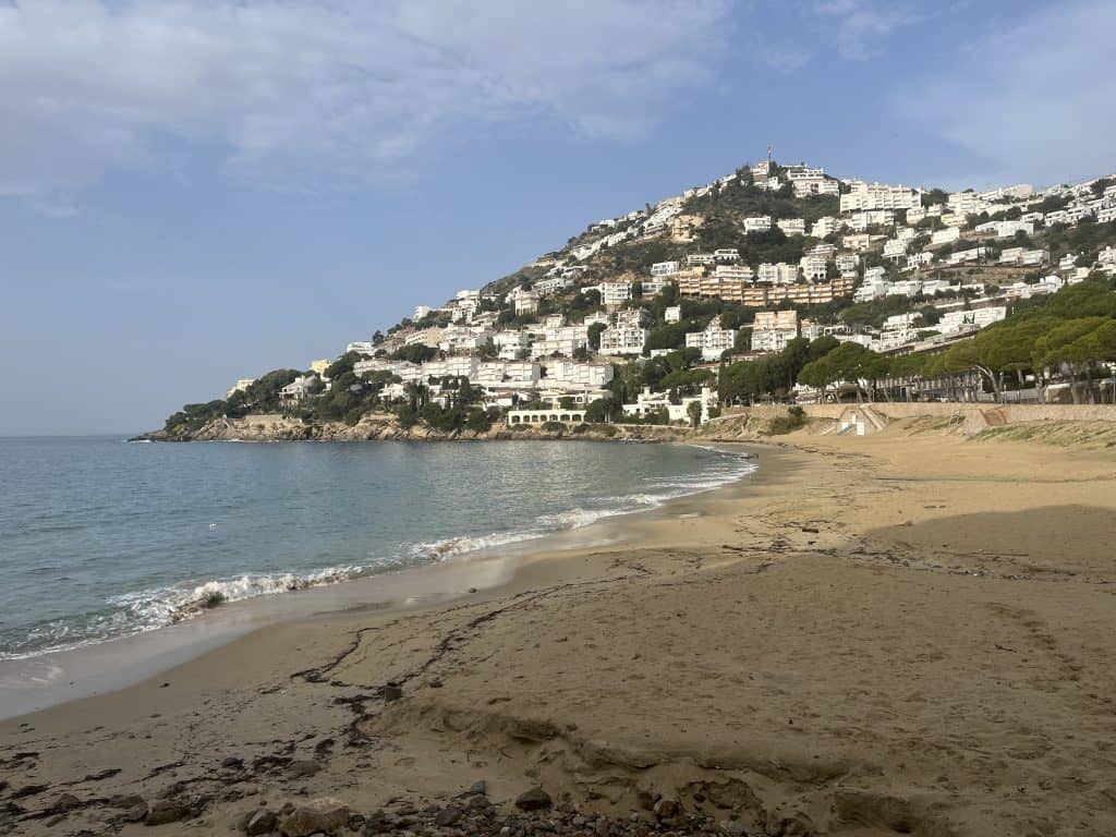 Wieder liegen einige Badebuchten am Weg allerdings nicht so schöne wie auf der anderen Seite des Kaps (schmaler und steiniger). Je näher wir Roses kommen um so mehr Menschen sind auch wieder auf dem Weg unterwegs. In Roses gibt es wieder schöne Sandstrände, die Stadt erschlägt einen allerdings mit ziemlich vielen hässlichen Hochhäusern.