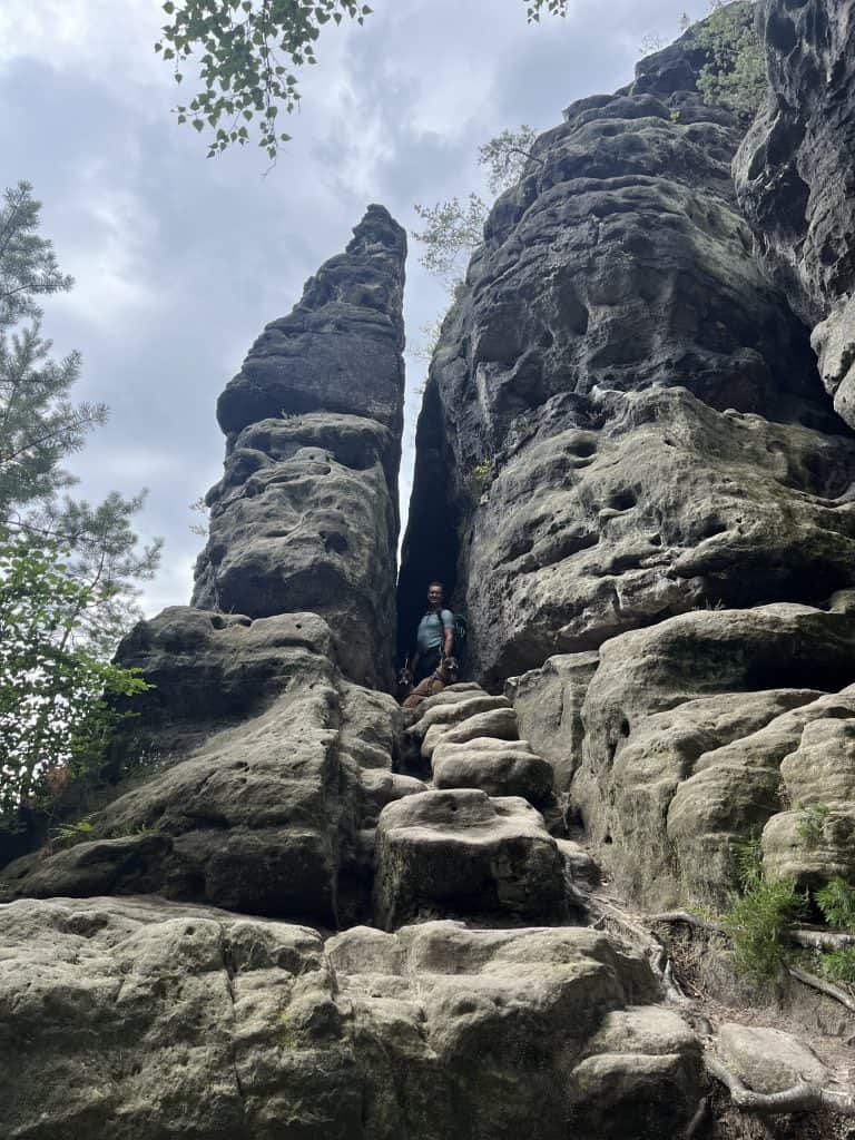 Elbsandstein steht schon länger auf der Wanderliste. Malerweg soll relativ viel los sein, deshalb entscheiden wir uns für den Forststeig https://www.forststeig.sachsen.de/ der eher durch unberührte Natur führt. Das impliziert aber dass man in Hütten oder im Zelt übernachten muss. In Hütten sind leider keine Hunde erlaubt.