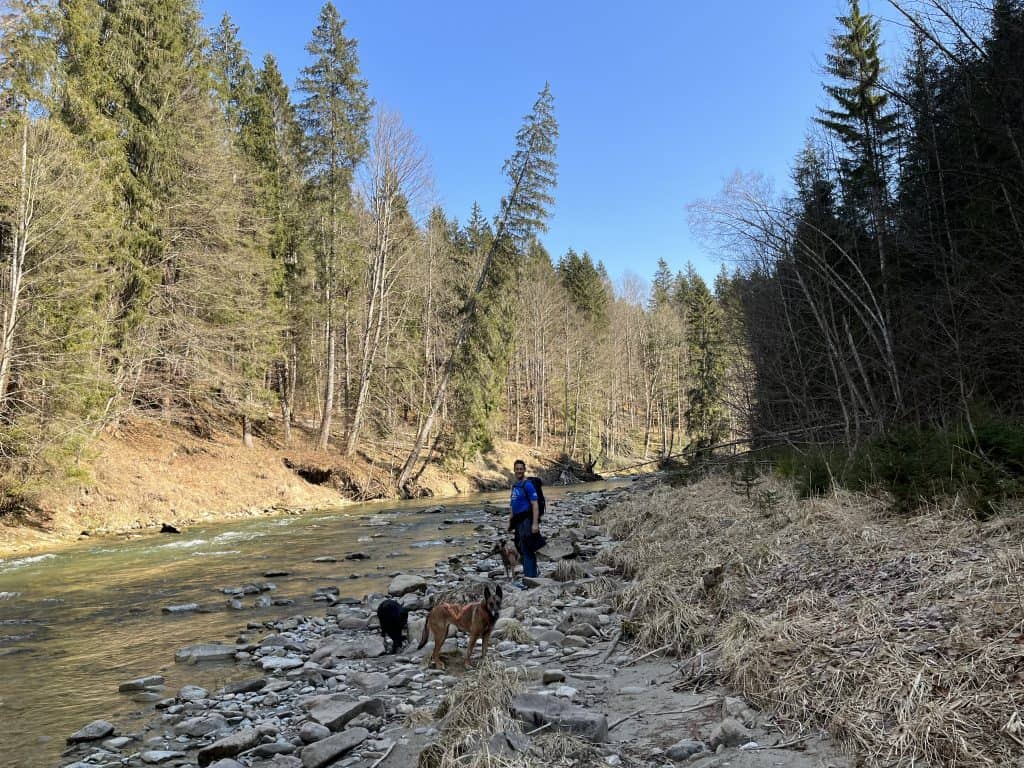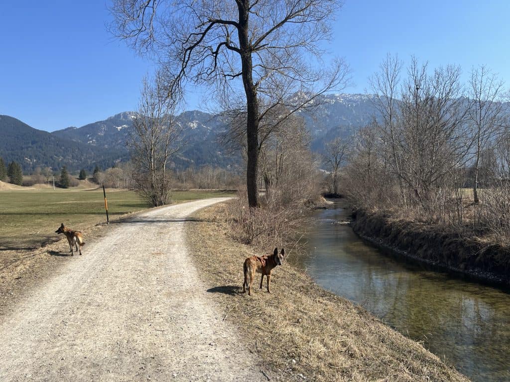 Am gesamten Weg gibt es ausreichend Bäche zum Trinken für die Hunde. Es ist wenig los, außer in der Nähe von Dießen ist kaum ein Mensch unterwegs. Allerdings sind bis auf den Anfang und das Endstück weite Stecken nicht sehr abwechslungsreich und die Wege breit und eintönig, aber gut zu laufen.