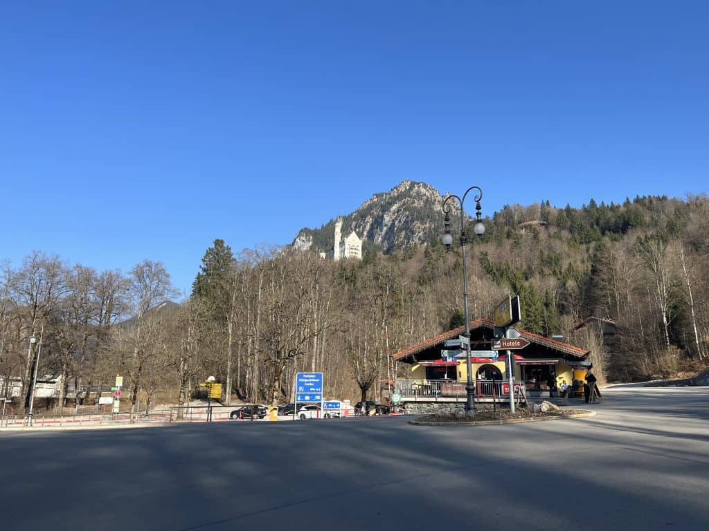Später geht es an einem lauschigen Bach entlang und in der Ferne kann man schon Blicke auf Neuschwanstein erhaschen. Die Marienbrücke ist leider gesperrt und so bleiben wir auf dem offiziellen Weg unterhalb von Neuschwanstein. In Hohenschwangau dann eine kurze Pause beim Kiosk mit Blick auf Neuschwanstein.