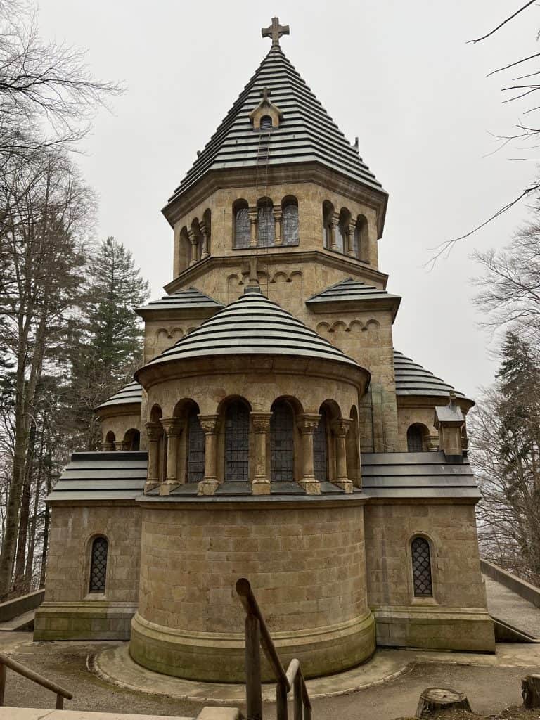 Durch den schön angelegten Schlosspark kommt man in 5 Minuten zur Votivkapelle – dem Todesort von König Ludwig und dem Startpunkt des Fernwanderwegs.
