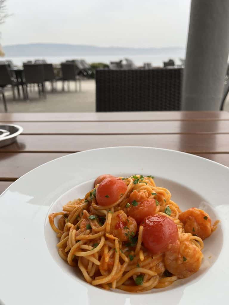 Robert und Akira drehen nach einer Stunde Wanderzeit wieder um und ich bin für den Rest des Tages mit den Malis alleine unterwegs. In Starnberg machen wir Pause im Strandcafé direkt an der Seepromenade.