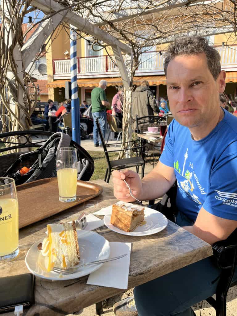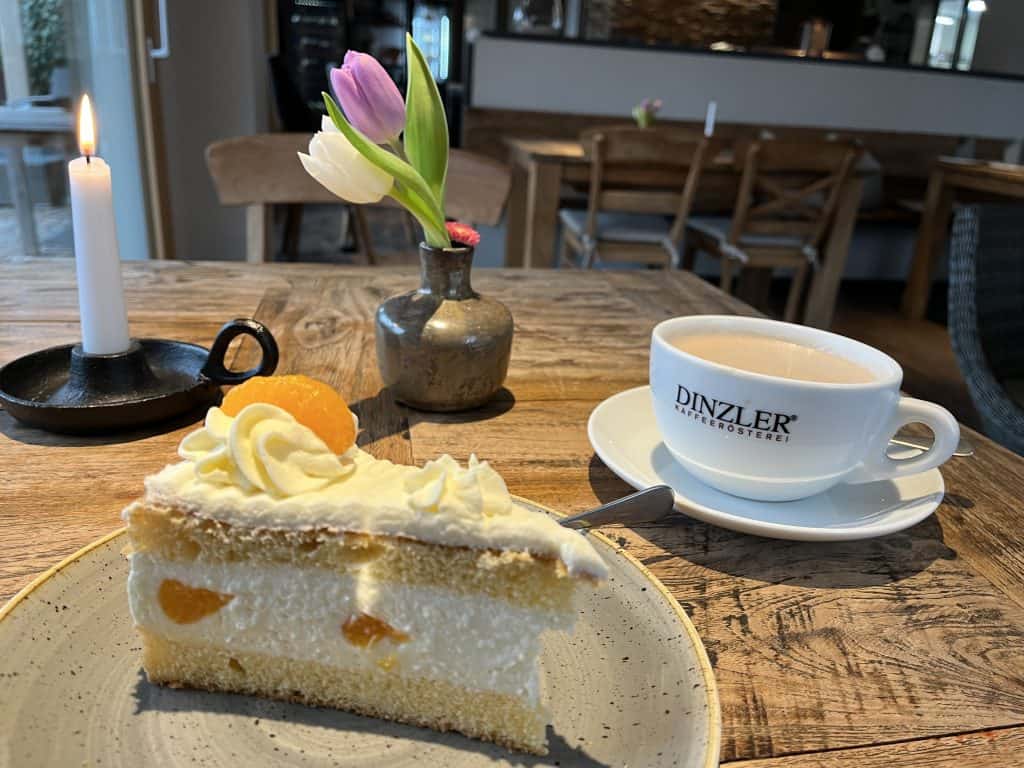 Auf den Schreck gibt es erstmal leckeren Kuchen im Kunst-Café in Rottenbuch, danach fahre ich per Taxi zurück nach Dießen um das Auto zu holen.