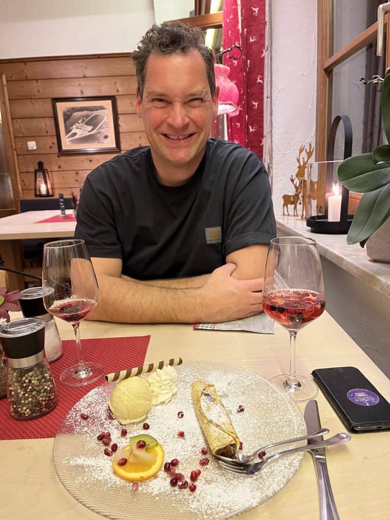 Es geht steil runter nach Füssen wo Robert und Akira schon auf uns warten. Das Abschluss-Eis haben wir uns verdient!