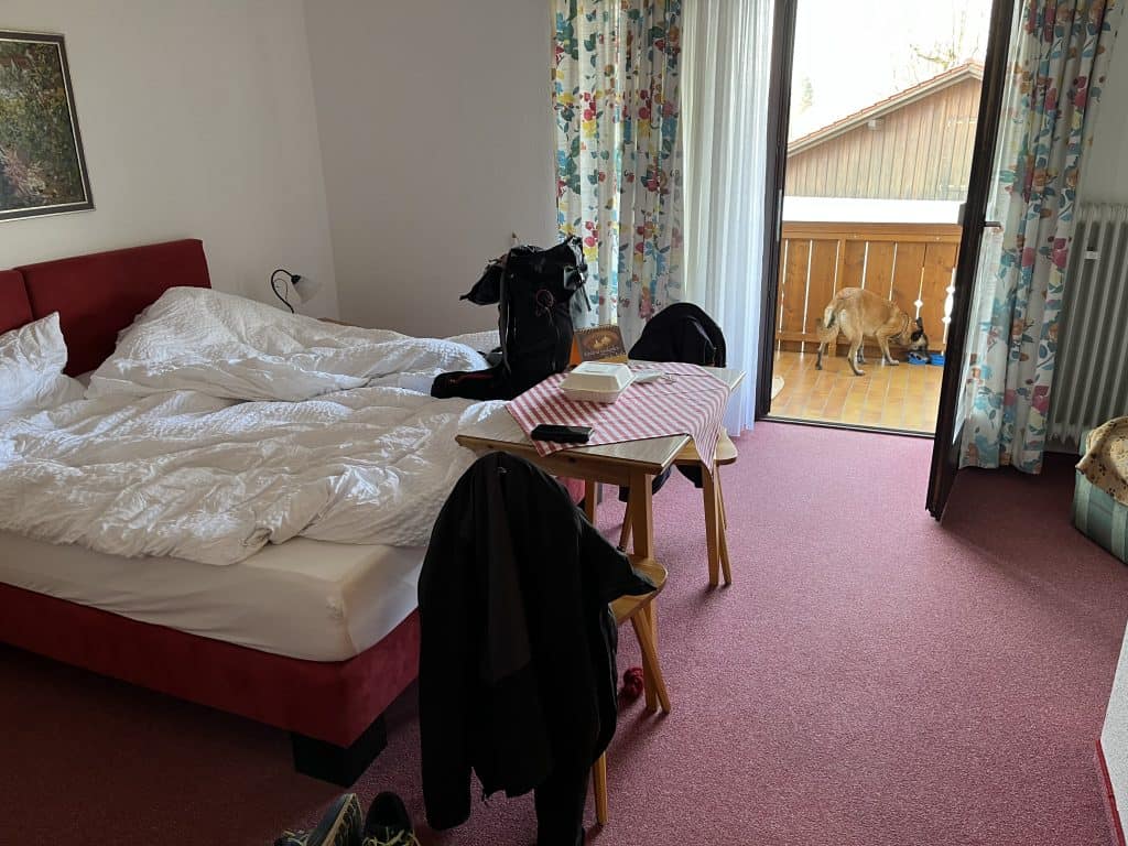 Wir übernachten im Hotel Alpchalet in Buching alpchalet-schwanstein.de und das Zimmer ist definitiv das schönste auf der Tour. Toll renoviert mit Terrasse und großem Bad, auch das Frühstücksbuffet ist ein Traum.