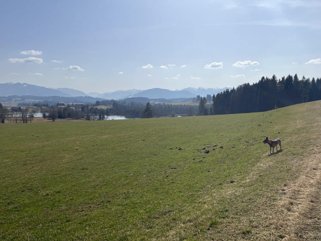 Ab Rottenbuch gibt es zwei Tourvarianten, einmal über Prem und einmal über Trauchgau. Leider habe ich bei meinen Recherchen keine hundefreundliche Unterkunft in Prem finden können, deshalb wählen wir den Weg über Trauchgau, denn meine Unterkunft liegt südlich von Trauchgau und die Etappe würde über Prem an die 30km lang werden.