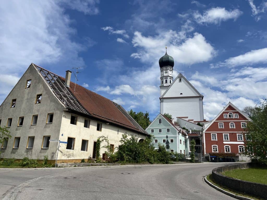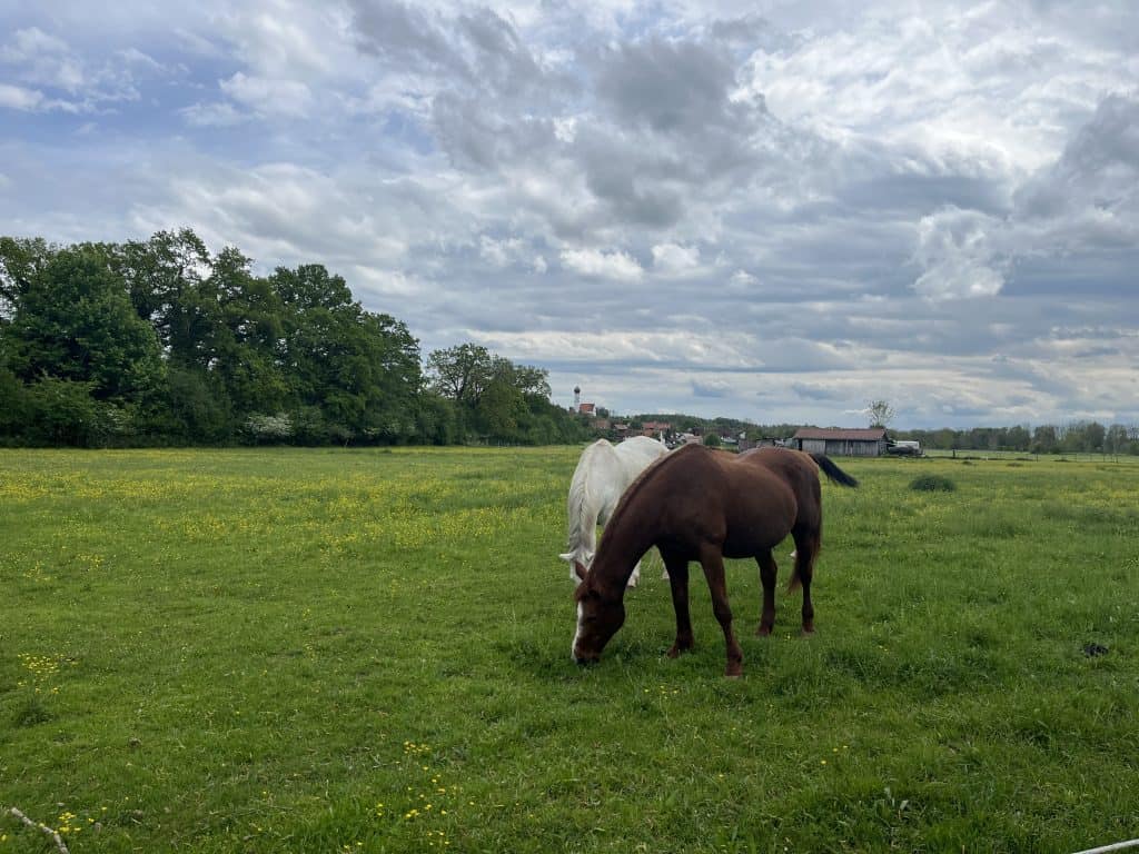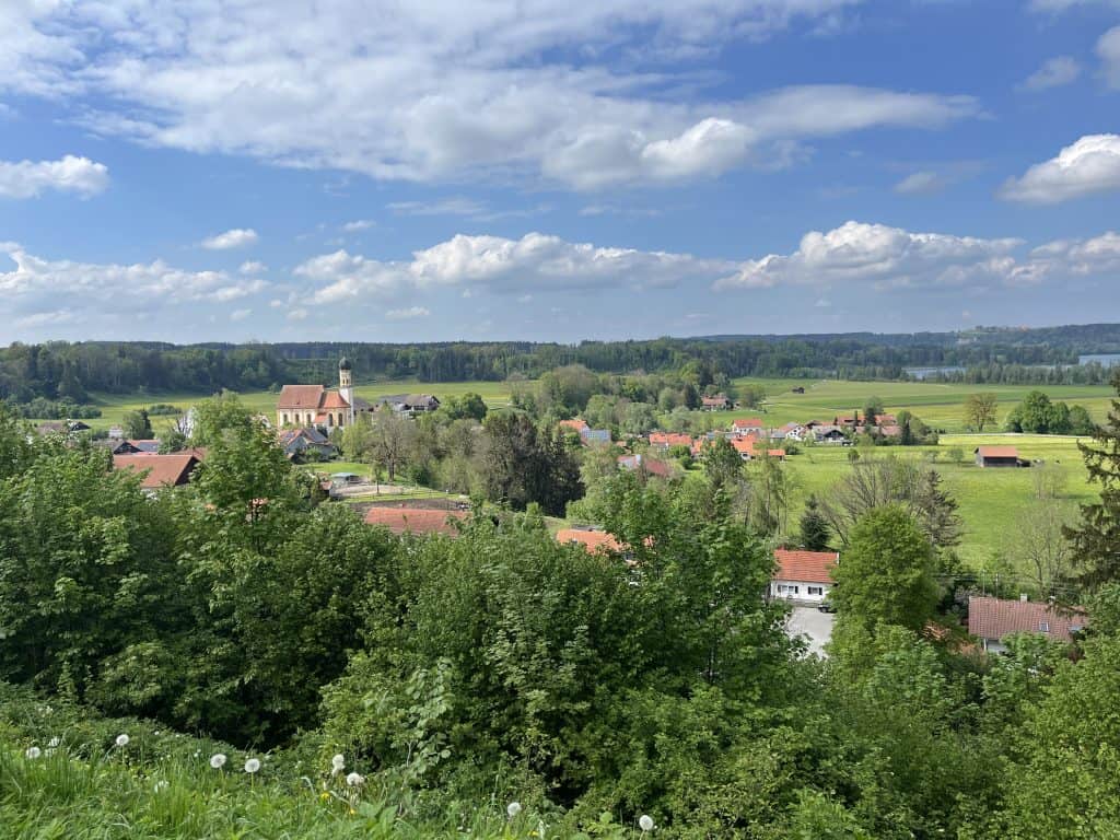 Kurz vor Scheurig verlassen wir den offiziellen Weg und biegen nach Klosterlechfeld und zur Bahnverbindung zurück nach Landsberg ab. Der Fußweg läuft parallel zur vielbefahrenen Straße, nicht wirklich schön zu laufen.