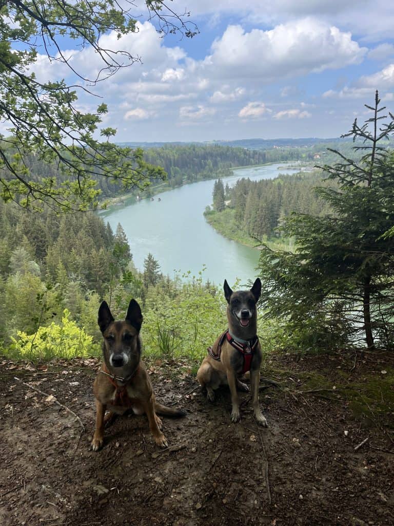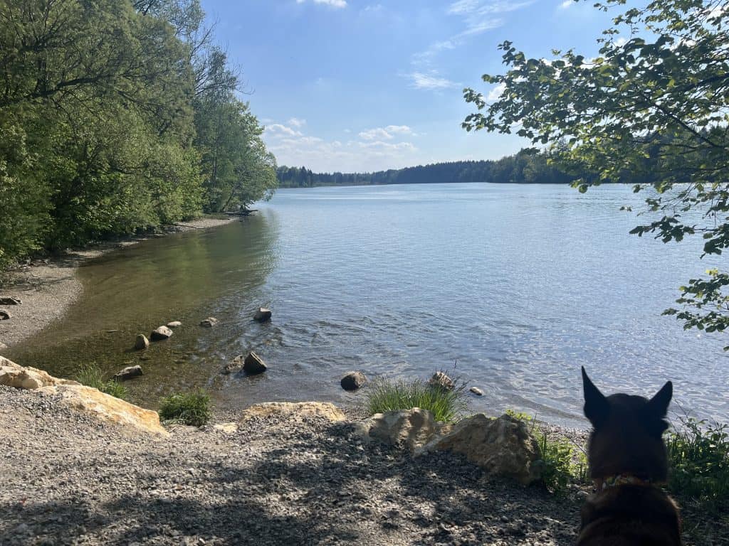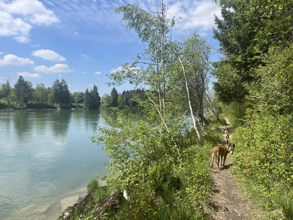 Das Stück direkt hinter Epfach sollte man wenn möglich aussparen, da sehr unübersichtlich direkt auf der Straße entlang. Ab dem Punkt rechts auf der Karte führt ein sehr schöner Hochuferweg weiter. Um Mintraching herum auch wieder sehr viel Asphalt, den Bogen hier auszugehen muss nicht sein, lieber auf den kleinen Wegen am Lech bleiben. Kurz vor Landsberg noch ein nettes Lokal direkt am Wasser, die Teufelsküche. Der offizielle Weg würde durch den Wildpark in die Innenstadt führen (Hunde angeleint erlaubt), aber mit Hunden ist es besser am Wasser entlang weiterzugehen. Landsberg mit der hübschen Innenstadt ist definitiv sehenswert. Viele Lokale, Cafés und Einkaufsmöglichkeiten. Es gibt einen Bus zurück nach Epfach.