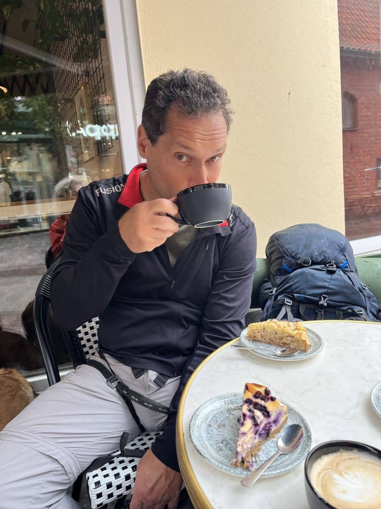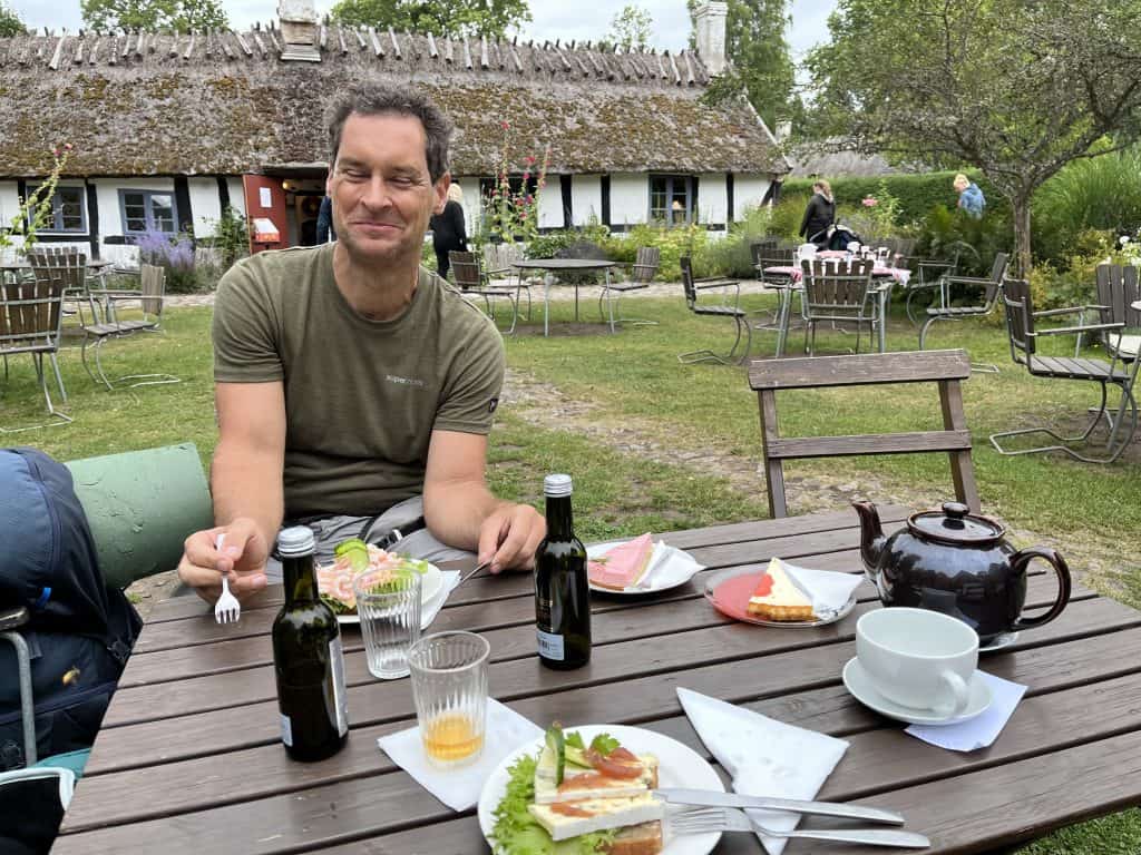Auf dem Weg kommen wir an einem kleinen Museum vorbei, leider geschlossen aber es gibt zumindest Wasser. Die nächste Pause in der Kaffestugan Alunbruket lohnt sich auf jeden Fall – leckere Sandwiches und Kuchen. Hier ist auch einiges los.