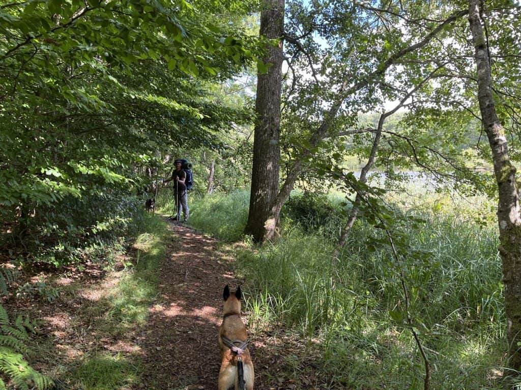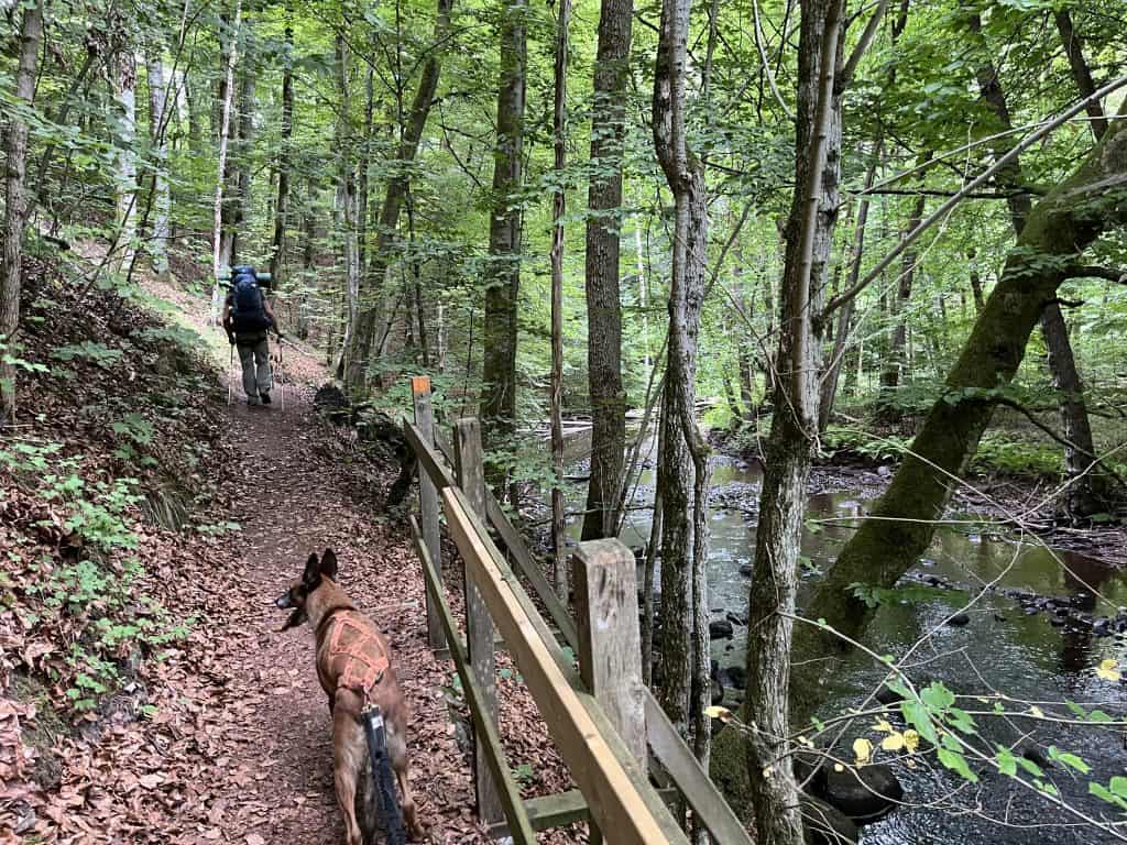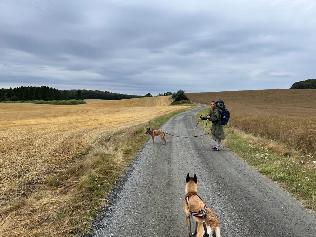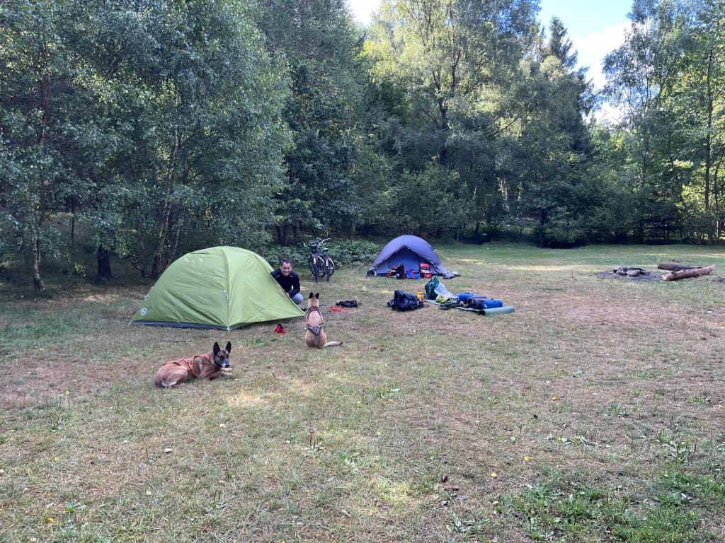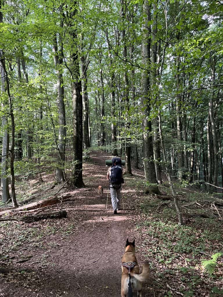 Am Ende der Etappe erreichen wir einen hübschen Buchenwald und den Biwakplatz. Um Wasser zu holen muss man nochmal ca. 350m zu einem Reitstall in der Nähe wandern. Allerdings gibt es auf dem dieser Etappe ausreichend gut markierte Wasserstellen wo man sich vorher eindecken könnte.