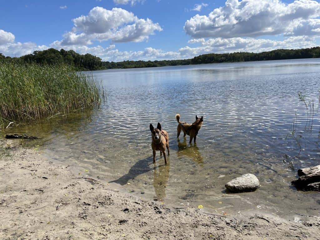 Wir machen einen Abstecher zu einem der Seen, aber dort ist es zwar idyllisch aber das Wasser ist so algig dass wir nicht mal die Hunde trinken lassen.