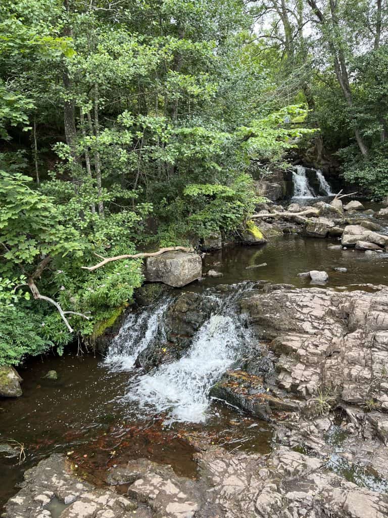 Viel los ist am Wasserfall Hallamölla, ansonsten nur vereinzelte Wanderer.