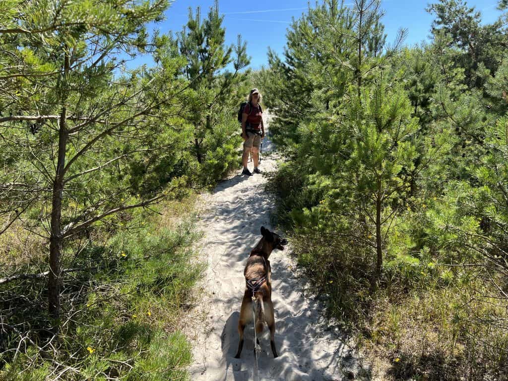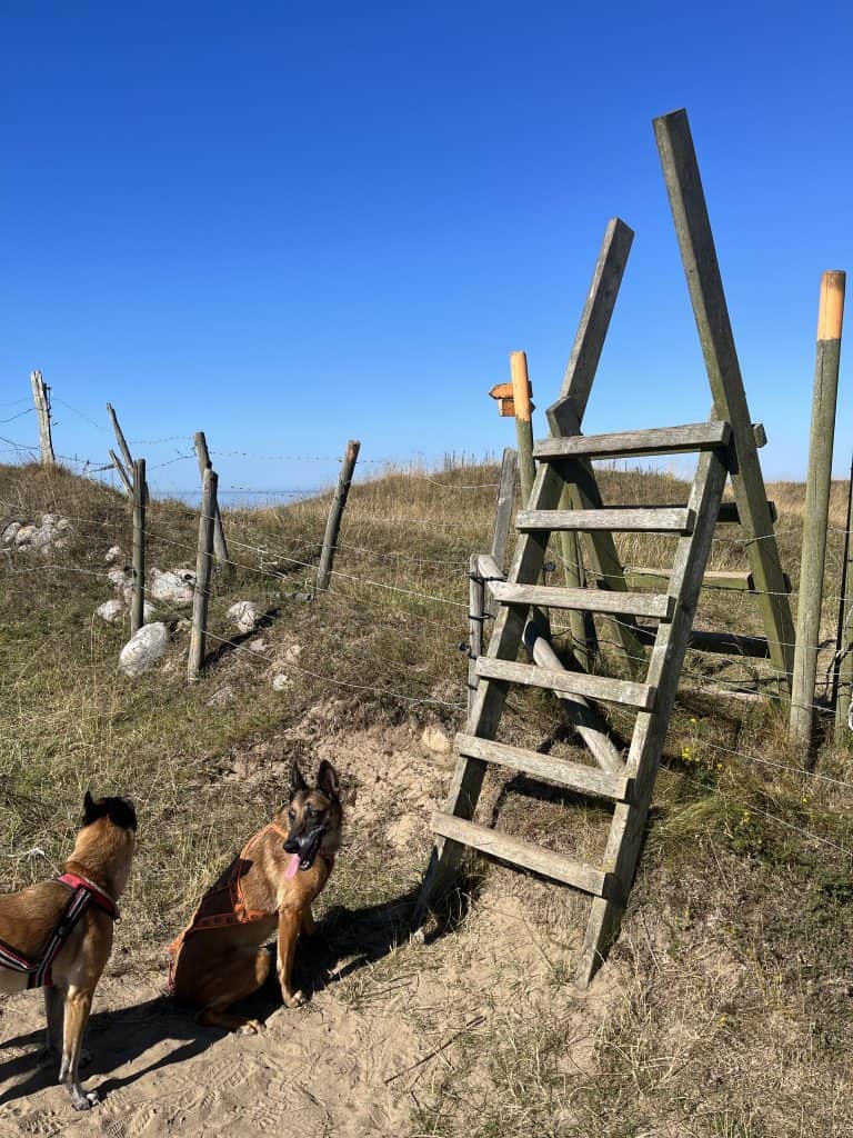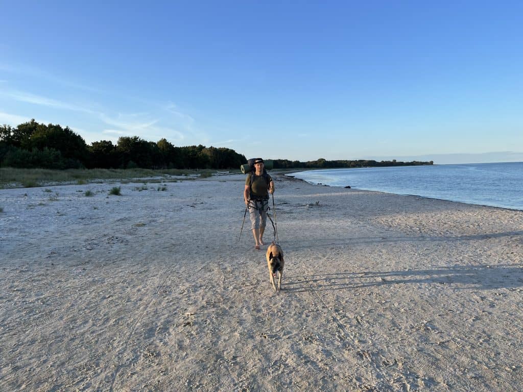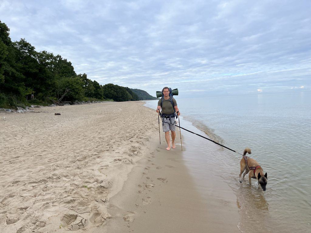 Hinter Brösarp stoßen wir wieder auf den offiziellen Wanderweg. Es geht über riesige Pferdekoppeln auf Sandwegen durch leicht hügeliges Gelände. Wir nähern uns dem Strand und die Dichte an Menschen die vor allem mit Hunden unterwegs sind wird höher.