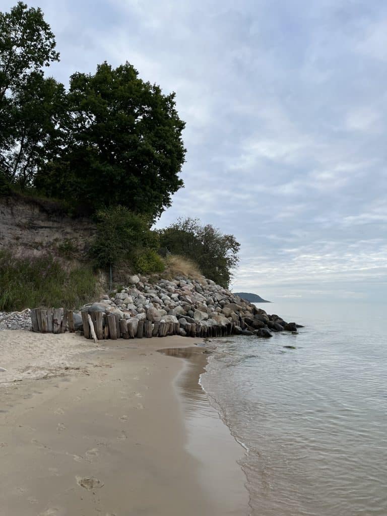 Der Strand wird immer voller je näher wir Löderup kommen. Zuerst die FKK Anhänger dann alle anderen. In Löderup gibt eine sehr nette Surfer Bar, die wir für eine Pause nutzen. Dahinter wird der Strand steiniger und auch die Anzahl an Menschen nimmt wieder ab.