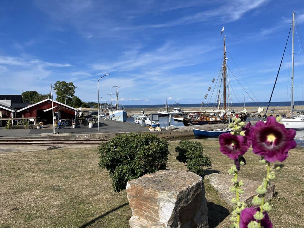 Es geht weiter am Meer entlang, zuerst über Asphalt, teils Radwege, hinter Brantvik zweigen wir wieder auf den nicht offiziellen Weg am Strand entlang ab. Der ist sehr schön und führt teils über Weiden. Am netten Hafen von Skillingen gibt es eine Fischräucherei.