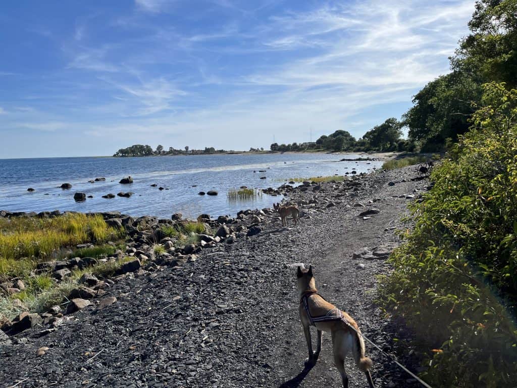 Wir sind ohne Fahrzeug unterwegs und übernachten teils im Zelt und teils im Hotel. Mit Hunden in Schweden ist es relativ unproblematisch, EU Pass mit Tollwutimpfung reicht für die Einreise, eine vorherige online Anmeldung beim Zoll ist sinnvoll damit man direkt durch die grüne Zone den Terminal verlassen kann. In Schweden gilt Leinenpflicht bis 15.8, da unsere Hunde hauptsächlich im Geschirr laufen ist das kein Thema.