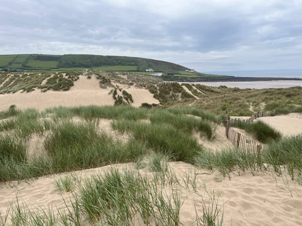 Von Sandstrand zu Sandstrand – zuerst in Woolacombe (Hunde bis auf den vordersten Teil erlaubt), über die Dünen bei Croyde Beach (keine Hunde am Strand erlaubt) und den super langen Saunton Beach (Hunde überall erlaubt) bis nach Braunton.