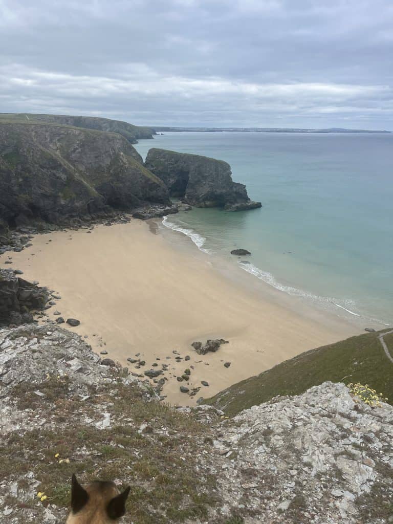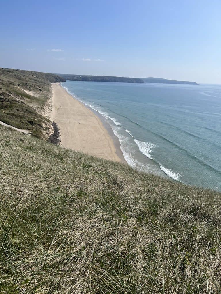 Es geht hauptsächlich über Sandstrände bis nach Perranporth. Es ist viel los an den Stränden, aber es funktioniert problemlos mit den ballspielenden Kindern und den ballspielenden Hunden auf teils recht engem Raum.