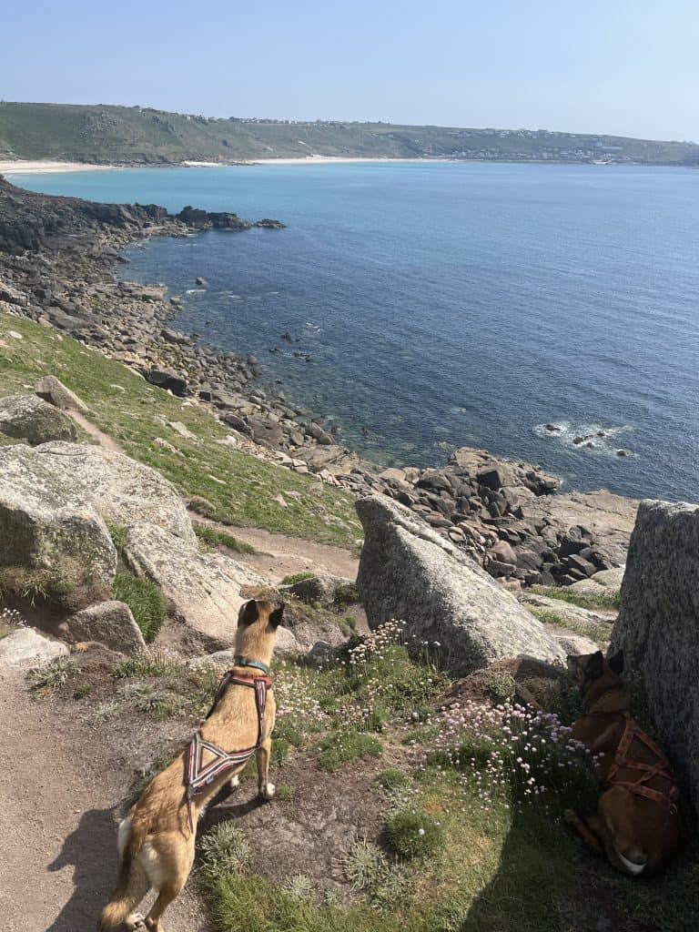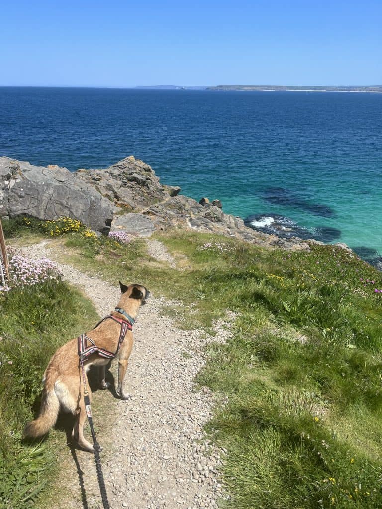 Der Weg ist für Hunde problemlos zu laufen, Wasser ist ausreichend am Weg zu finden, viele kleine Bäche kreuzen den Weg und fließen ins Meer. In den Orten steht vor fast jedem Laden oder Lokal eine Wasserschüssel für Hunde – die Engländer sind vernarrt in Hunde, haben selbst meist mehrere und sind sehr aufgeschlossen. Es gibt fast nirgendwo Leinenpflicht allerdings einige Weiden die überquert werden müssen mit Schafen, Kühen und Pferden. Die Kühe reagieren teilweise aggressiv auf Hunde.