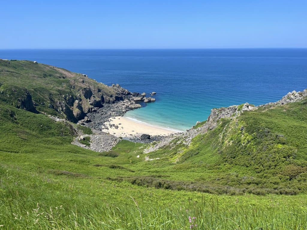 Ich lasse ein kleines Stücken vom SWC aus (Hayle/Leland – recht urban) und steige bei Carbis Bay (wo recht schicke Villen stehen) wieder ein. Ein netter Weg führt bis nach St. Ives – ein Ort aus dem Bilderbuch, es ist viel los. An den Stränden sind keine Hunde erlaubt. Dahinter geht es wieder recht einsam auf und ab an der Steilküste entlang bis nach Zennor. Der Weg ist recht steinig und anspruchsvoll. Im Wasser sieht man einige Seehunde.